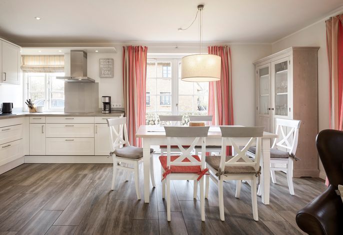 In unmittelbarer Nähe zum Wyker Südstrand, und in direkter Nachbarschaft zu den Flächen des alten Golfplatzes, auf dem Gelände des ehemaligen Kaiserhofes ist die ?„Residenz am alten Golfplatz?“ entstanden. Mit nur wenigen Schritten gelangen Sie zum Strand und zur Promenade, welche Sie ins Herz von Wyk führt. Die Innenstadt mit ihren Café,s, Restaurants sowie Einkaufsmöglichkeiten ist so schnell und bequem zu erreichen. Das Doppelhaus wird mit einem traditionellen Friesenwall umgeben. Auch bei der Innenausstattung wurde an alles gedacht von dem großzügigen Wohn-Essbereich mit Kamin bis hin zur eigenen Sauna hier genießen Sie die schönsten Tage des Jahres.