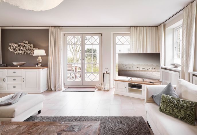 Herzlich willkommen im Senhoog - ein exklusives Einzelhaus im historischen Inseldorf Nieblum gelegen. Hier finden Sie alte Kapitänshäuser, bunte Bauerngärten, Baumalleen und reetgedeckte Friesenhäuser - der perfekte Ausgangspunkt für einen erholsamen Urlaub. Das Haus ist sehr hochwertig ausgestattet, mit liebevollen Details dekoriert und lässt keine Wünsche offen. Den großzügigen Wohnraum und die angrenzende Essecke verbindet ein offener Kamin. Die Schlafräume im Obergeschoss mit jeweils angrenzenden Bädern haben Suiten-Charakter und der Saunabereich mit Relaxmöbeln lädt zum Entspannen ein. Erleben Sie hier Ihre schönste Zeit des Jahres.