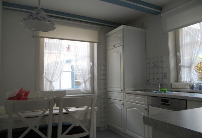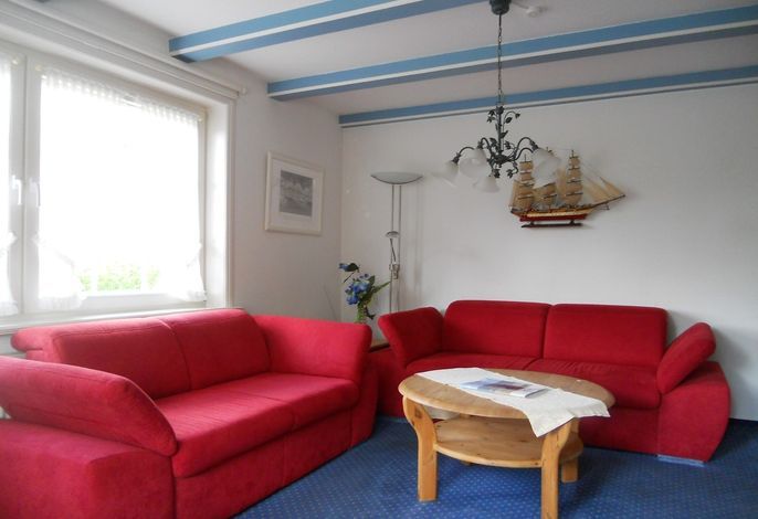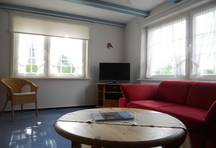 Unsere ca. 66 qm große Erdgeschosswohnung Sieck 01 bietet sich für 4 bis maximal 5 Personen an, um herrliche Urlaubstage zu erleben. Die gepflegte Wohnung wurde liebevoll eingerichtet und alle Zimmer sind vom Flur aus zu erreichen. Lichtdurchflutet und mit Wlan, Flachbild-TV und CD-Player ausgestattet, können Sie eine gemütliche, gemeinsame Zeit im Wohnzimmer verbringen. Eine bequeme Sitzgruppe lädt zum Relaxen ein. Das Elternschlafzimmer verfügt neben dem Doppelbett und einem Kleiderschrank auch über ein zusätzliches Waschbecken. Im zweiten Schlafraum befinden sich ein Kleiderschrank, ein Doppel- und ein Einzelbett. Das Bad ist hellgefliest und zweckmäßig mit Dusche, Fenster und Handtuchheizkörper gestaltet. In der gut ausgestatteten Küche mit Sitzecke, Ceranfeldherd mit Backofen, Geschirrspüler, Kühlschrank mit Gefrierfach und Kaffeemaschine macht das Kochen auch zu Hause Spaß! Besonders für unsere Gäste, die gerne ruhig und doch zentral wohnen möchten, bietet sich unser Haus Sieck ideal an.