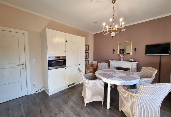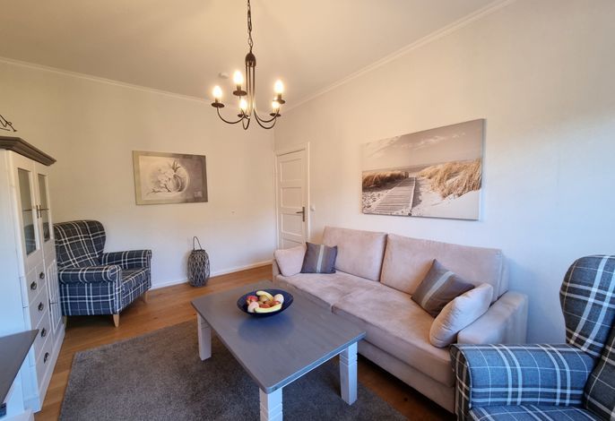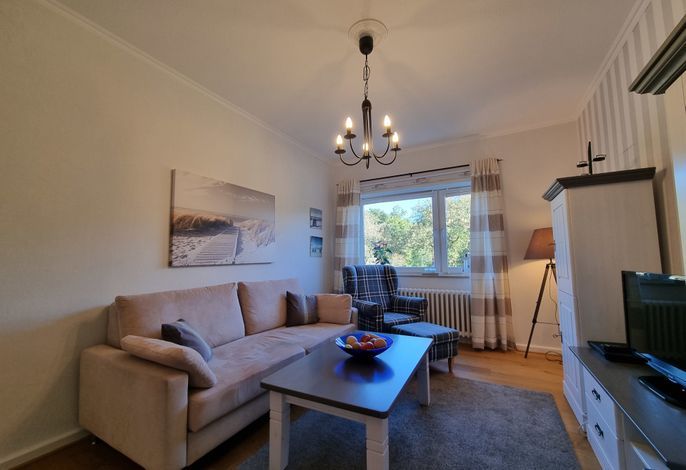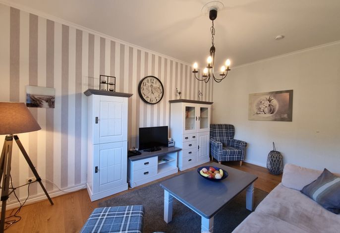 Das Schlafzimmer verfügt über ein komfortables Doppelbett 1,80 m x 2,00 m und einen großzügigen Kleiderschrank. Es ist außerdem ausreichend Platz vorhanden, um ein Kinderbett aufzustellen. Bettwäsche und Handtücher sind für 25 € pro Person inklusive. Das helle und freundliche Wohnzimmer bietet neben einem gemütlichen Sofa, das als zusätzliche Schlafgelegenheit dient, auch eine Auswahl an Büchern und Spielen für Ihre Unterhaltung.