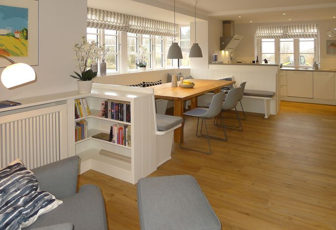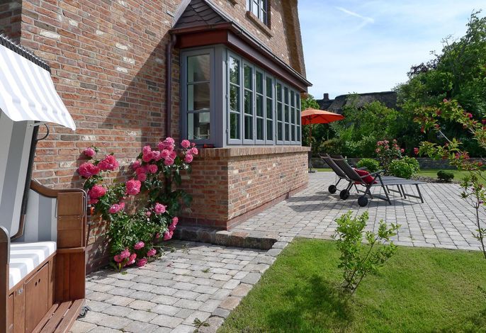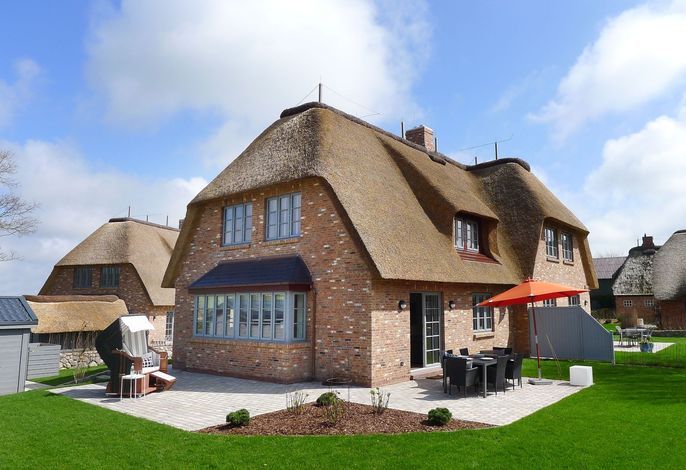 Das Dorf Oldsum, genannt das Künstlerdorf, befindet sich im westlichen Teil Föhrs. Das Haus steht in einer ruhigen Straße am Rande der Marsch, mit kurzen Wegen zum Edeka Markt mit Bäckerei, zu zwei gemütlichen Cafes und zum Dorfgasthof. Das Reetdachhaus liegt direkt am ausgeschilderten Radwanderweg. Die Haushälfte ist großzügig und hell eingerichtet. Zwei Sonnenterrassen mit südlicher und westlicher Ausrichtung laden zum Sonnenbaden und Grillen ein. Sollten Sie mit einem Elektro Auto anreisen, so befindet sich nahe gelegen eine öffentliche Ladesäule