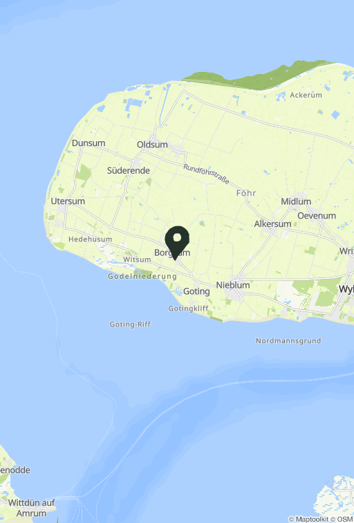 Die Ferienunterkunft liegt unweit der Borgsumer Mühle; Bäcker, Restaurant und Café sind fußläufig erreichbar. Vom Strunwoi aus, der Straße durch welche das Grundstück erschlossen wird, ist die Nordsee am Horizont zu sehen.