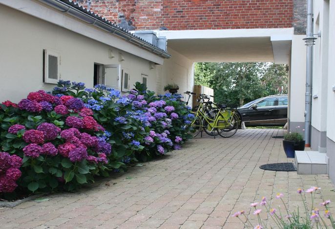 Die Stadtwohnung 1 liegt im Erdgeschoss links des Hauses Stadtwohnungen 10A. Sie verfügt über ein kombiniertes Wohn / Esszimmer mit einer Küchenzeile mit Einbauküche, 2 separate Schlafräume, ein Duschbad und eine Süd-Terrasse nebst Garten. Zudem stehen 8 videoüberwachte PKW- Stellplätze für 9 Stadtwohnungen direkt am Haus zur Verfügung. Waschmaschine und Trockner stehen Ihnen im Hauswirtschaftsraum des Hauses zur Verfügung. In den gemeinsamen Bereichen finden Sie außerdem diverse Brettspiele, Bücher sowie Prospekte und Kaffeepad- und Kapselmaschinen, die Sie sich für Ihren Aufenthalt gerne mit in Ihre Stadtwohnung nehmen können.