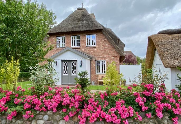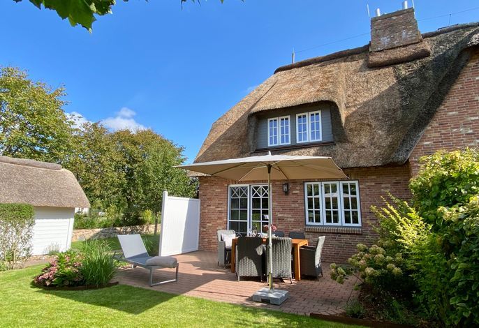 Das wunderschöne Reetdachhaus liegt im beschaulichen Friesendorf Oldsum und bietet den perfekten Ort für einen entspannten Urlaub für bis zu 4 Personen. Die ca. 130 qm große Doppelhaushälfte erstreckt sich über drei Etagen und wurde für die Saison 2025 komfortabel und geschmackvoll renoviert und neu ausgestattet. Der komplett umzäunte Garten und die sonnige Terrasse mit schönen Möbeln und Strandkorb laden zum Entspannen und Verweilen ein. Ein PKW-Stellplatz steht Ihnen direkt am Haus zur Verfügung und Ihre Fahrräder können Sie in dem reetgedeckten Gartenhaus abstellen. Ihren Hund dürfen Sie gerne mitbringen. Unser Haus ist ein Nichtraucherhaus.