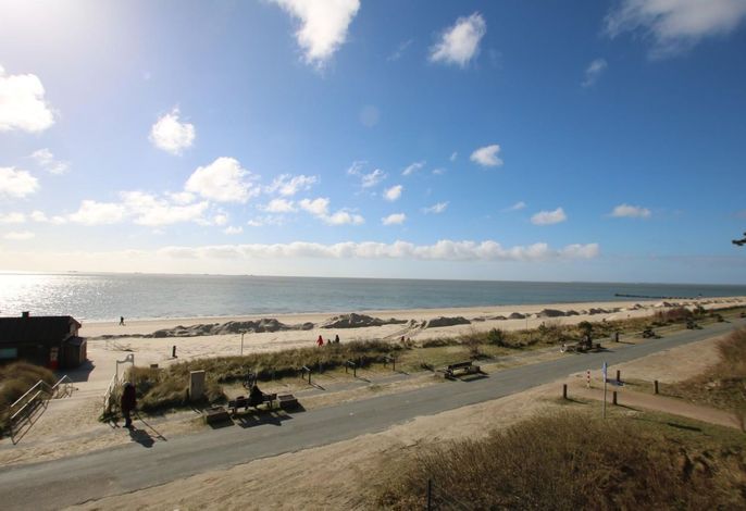 Diese traumhafte 3- Zimmer Ferienwohnung (1. Obergeschoss) in bester Lage am Wyker Südstrand lässt keine Wünsche offen. In erster Reihe zu Strand und Meer erstrecken sich die ca. 80m² der Nichtraucherwohnung. Vom Balkon haben Sie einen sagenhaften Blick auf die Nachbarinseln und das Meer. Das großzügige Wohnzimmer mit offener, luxuriöser Küche, einem Esstisch mit vier Stühlen und der bequemen Ledercouch mit zwei Sesseln lädt nicht nur bei schlechtem Wetter zum verweilen ein.