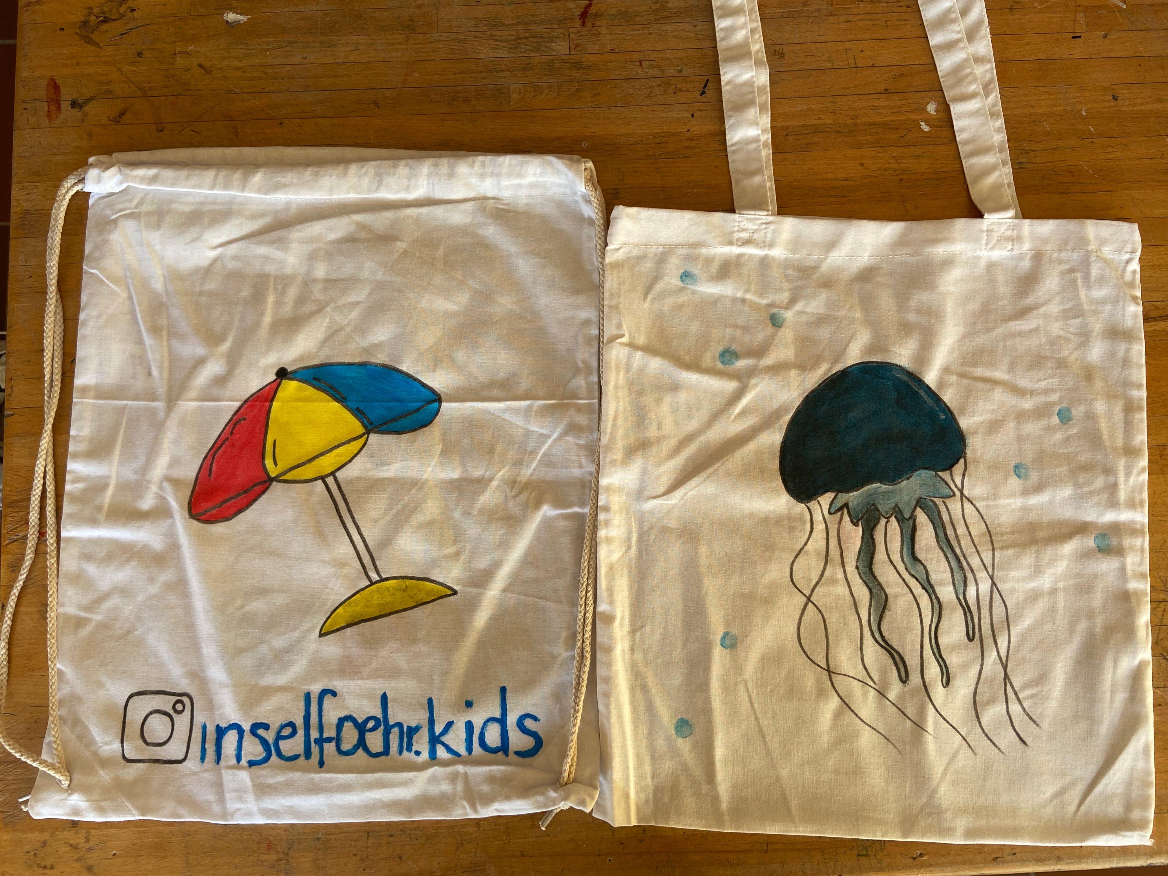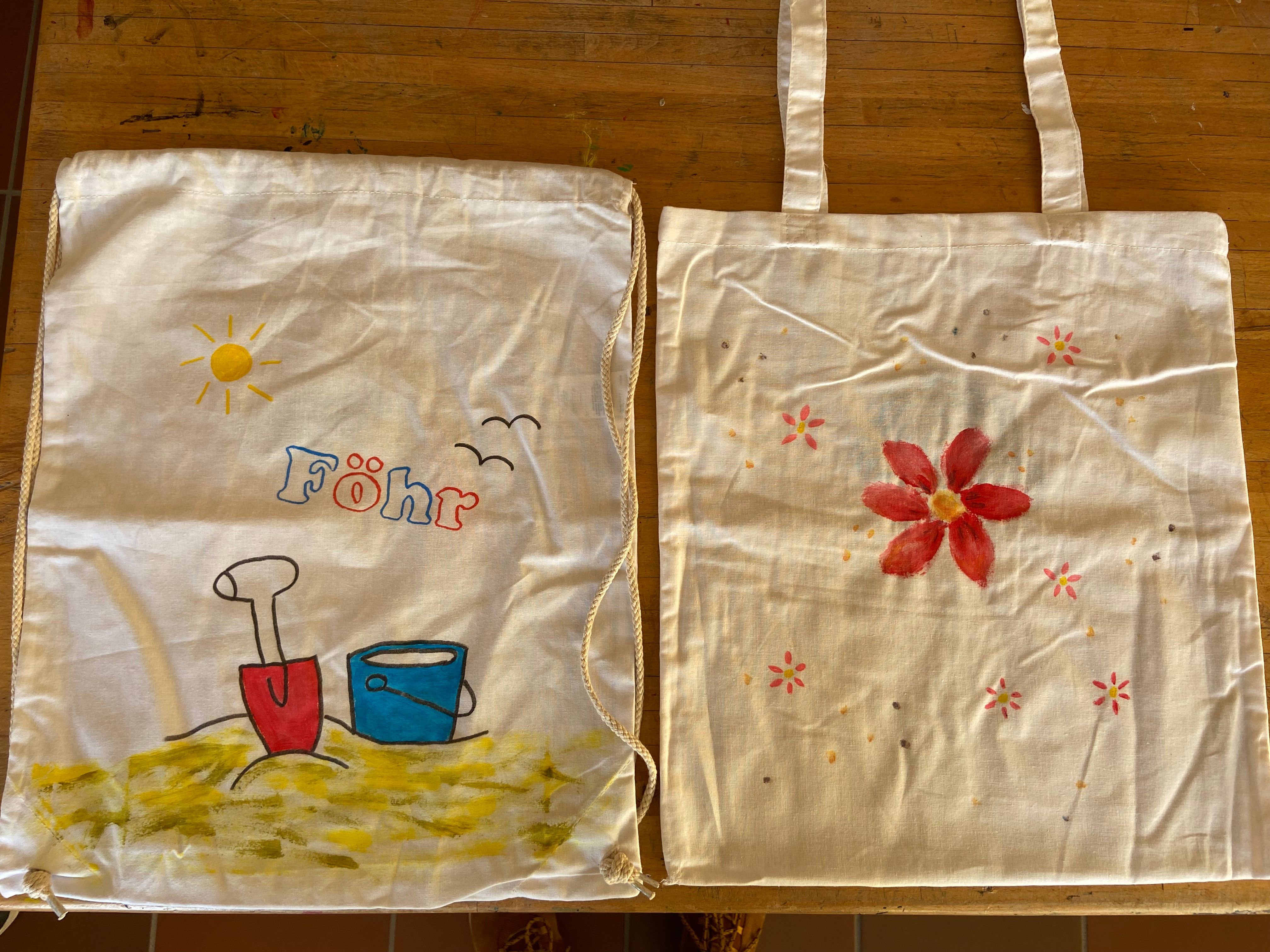 In einem selbstbemalten Beutel könnt ihr prima eure liebsten Erinnerungen an eure schöne Zeit hier auf Föhr verstauen!