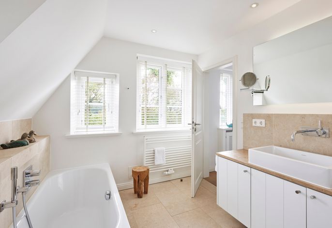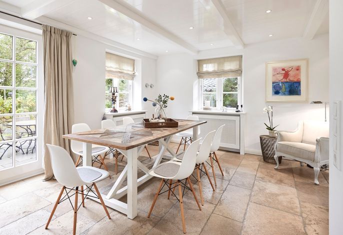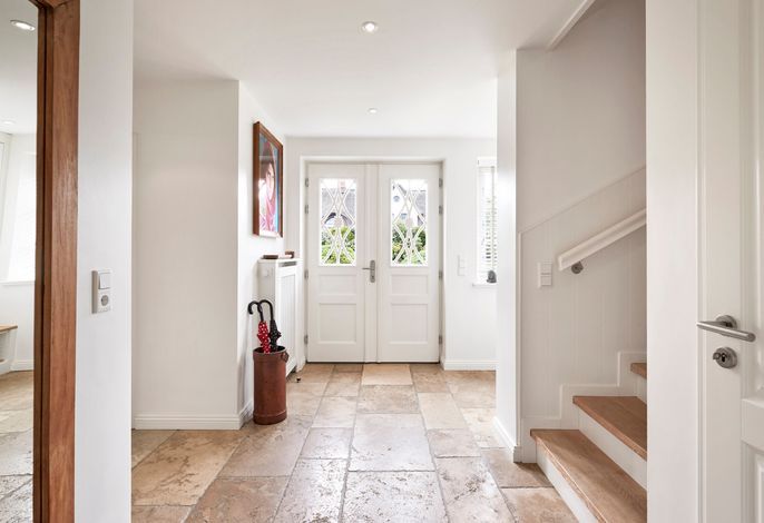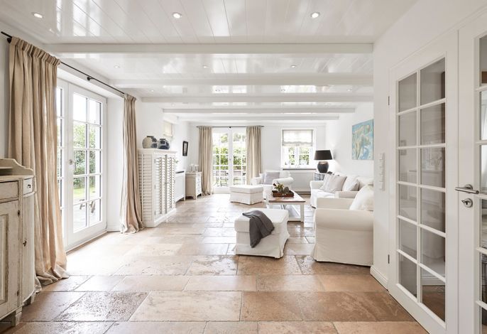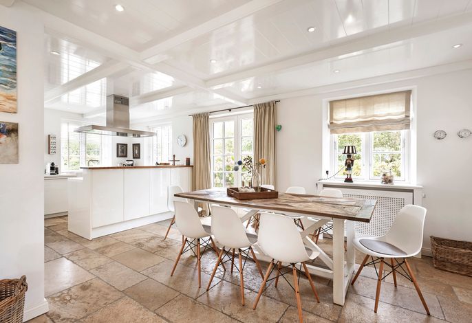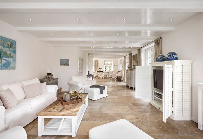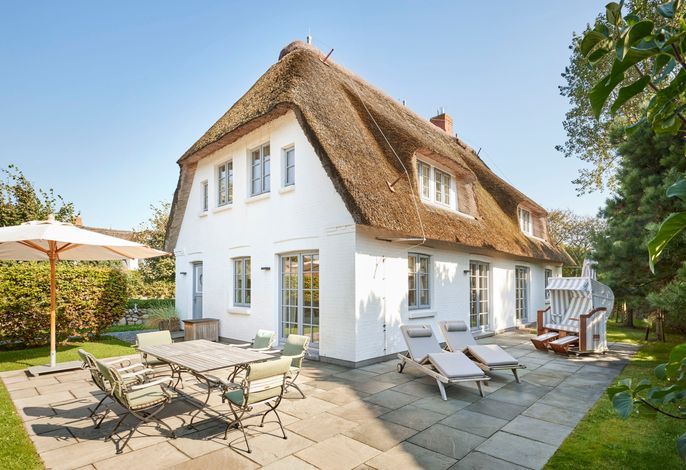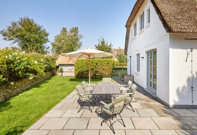 Wohnen Sie in diesem exklusiven Einzelhaus unter Reet im wunderschönen Friesendorf Nieblum. Hier finden Sie alte Kapitänshäuser, bunte Bauerngärten, Baumalleen und reetgedeckte Friesenhäuser - der perfekte Ausgangspunkt für einen erholsamen Urlaub. Das Haus ist sehr hochwertig ausgestattet und lässt keine Wünsche offen. Ein großzügiger Wohnraum mit Kachelofen, daran angrenzend der Essbereich für 6 Personen und die offene Küche mit allem, was das Kochherz begehrt, machen das Erdgeschoss zum Blickfang. Im Obergeschoss befinden sich drei geräumige Schlafräume und zwei Badtempel. Auf der ca. 95qm großen Terrasse und im schön angelegtem Garten werden Sie erholsame Urlaubstage verbringen.
