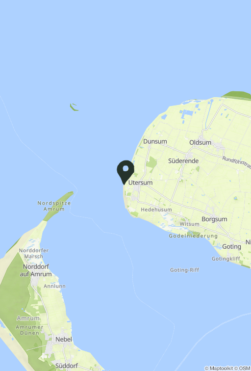 In Utersum befinden sich die öffentlichen Toiletten im Haus des Gastes (Klaf 2) direkt Strand in Zone 1, im kleinen Kurmittelhaus (Noorder Kaalkamp) und am Hundestrand (hinter Zone H).