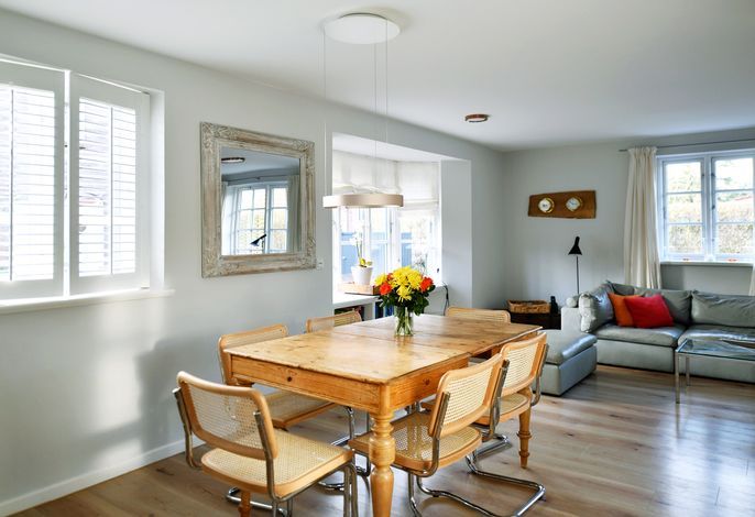 Die Strandhütte ist modern und zeitlos eingerichtet. Sie können sich z. B. auf einen schönen, offenen, kommunikativen Koch- und Essbereich mit einer modernen Einbauküche - mit Induktionsherd - freuen. Dazu auf einen...