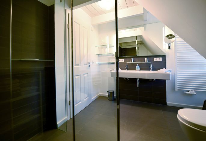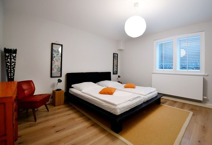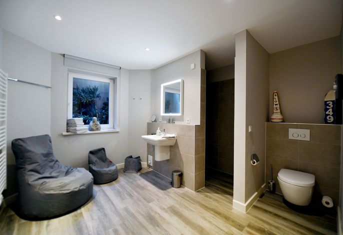 Die Strandhütte ist modern und zeitlos eingerichtet. Sie können sich z. B. auf einen schönen, offenen, kommunikativen Koch- und Essbereich mit einer modernen Einbauküche - mit Induktionsherd - freuen. Dazu auf einen großzügigen, komfortablen Wohnbereich mit einem antiken Kaminofen. Und auf bequeme Boxsprint-Betten in den beiden Schlafzimmern im OG. Außerdem erwarten Sie in der Strandhütte: Insgesamt 3 elegante Duschbäder, eine Wellness-Oase im UG sowie zwei sonnige Terrassen mit einem Luxus-Strandkorb und Garten. Wallbox am Parkplatz.