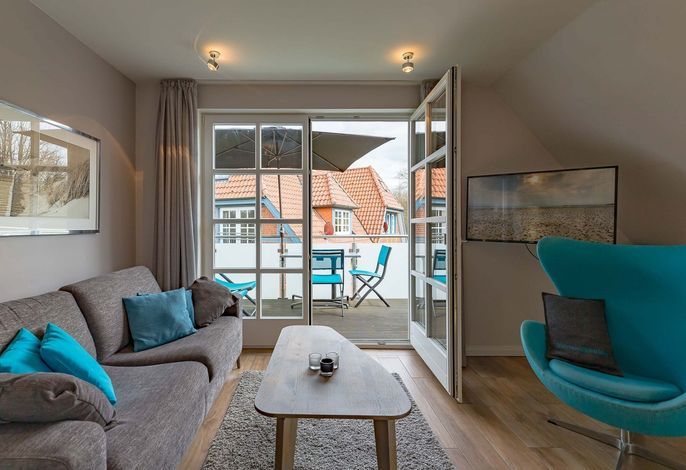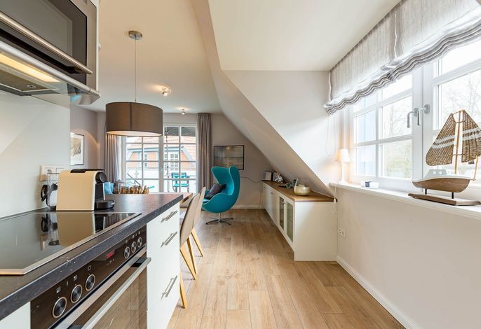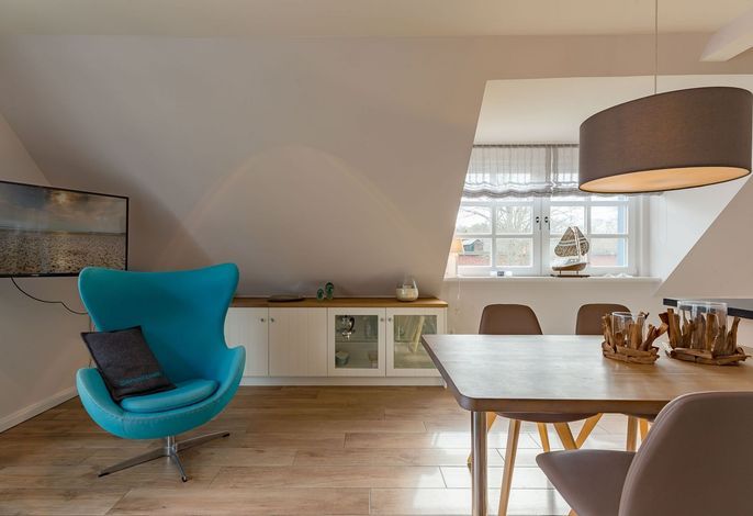 Herzlich willkommen in Ihrem Urlaubsdomizil. Sie sind ganz in der Nähe des Wyker Südstrandes. Ein paar Schritte durch den alten Kurpark und vor Ihnen liegen der Strand und die Strandpromenade. Hier haben Sie alles, was einen Nordseeurlaub ausmacht. Meeresrauschen, Möwengeschrei, Sandstrand, eine leichte Brise und dazu der Blick bis zu den Halligen. Strandkörbe laden zum Sonnenbaden ein und das Meer zum Abkühlen. In Ihrer modernen und mit viele Liebe zum Detail ausgestatteten Obergeschoss-Wohnung wird es Ihnen an nichts fehlen. Neben einem Balkon, auf dem Sie Ihr Frühstück genießen werden, haben Sie auch einen eigenen Gartensitzplatz. Wenn Sie nicht gerade am Strand sind oder die Insel mit dem Rad erkunden, können Sie hier in Ruhe sitzen und die Sonnenstrahlen, die leichte Meeresbrise und die salzhaltige Luft genießen. Alles erreichen Sie in wenigen Gehminuten oder mit dem Rad. Bummeln Sie über die Strandpromenade nach Wyk oder starten Sie eine Radtour zu den schönen Inseldörfern.