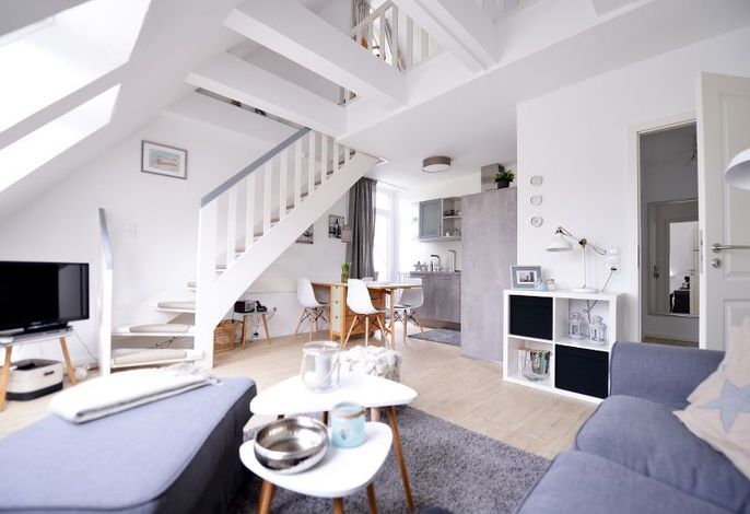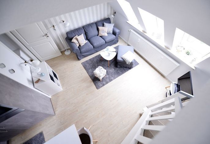 Das Appartement verfügt über zwei Schlafzimmer, eines davon in der offenen Galerie der Wohnung und ist somit für 4 Personen geeignet.