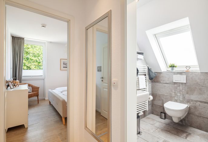 Das Appartement verfügt über zwei Schlafzimmer, eines davon in der offenen Galerie der Wohnung und ist somit für 4 Personen geeignet.