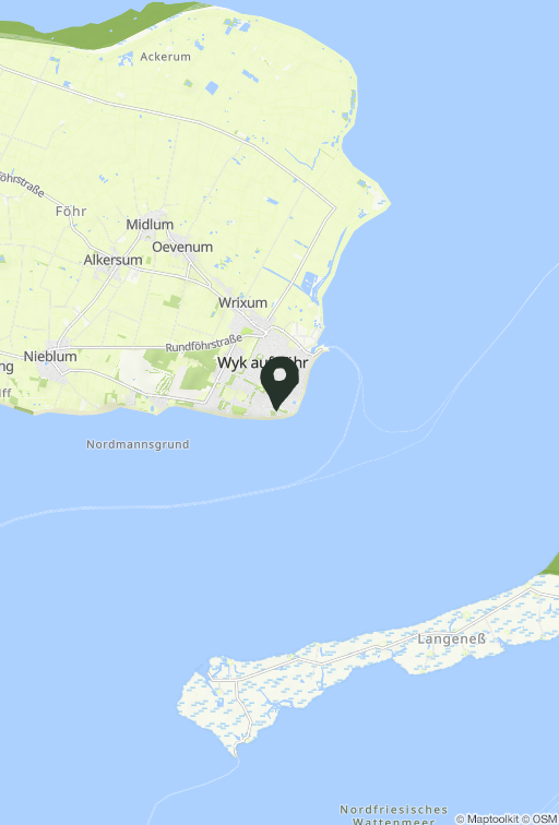 Die Lage der Ferienwohnung ist ideal für einen erholsamen Urlaub. Einkaufsmöglichkeiten sind nur ca. 500 m entfernt, so dass Sie schnell und bequem alles Nötige besorgen können. Der Strand ist nur ca. 220 m entfernt, sodass Sie in wenigen Minuten zu Fuß dort sind und das Meer und den Sandstrand genießen können. Auch Golfliebhaber kommen auf ihre Kosten, denn der Golfplatz ist ca. 2,9 km entfernt. Das Ortszentrum von Wyk auf Föhr mit seinen Restaurants, Cafés und weiteren Geschäften erreichen Sie in ca. 1,6 km.