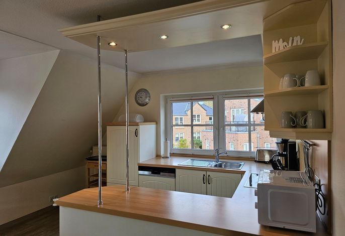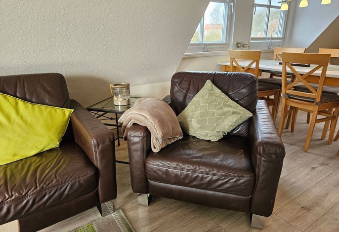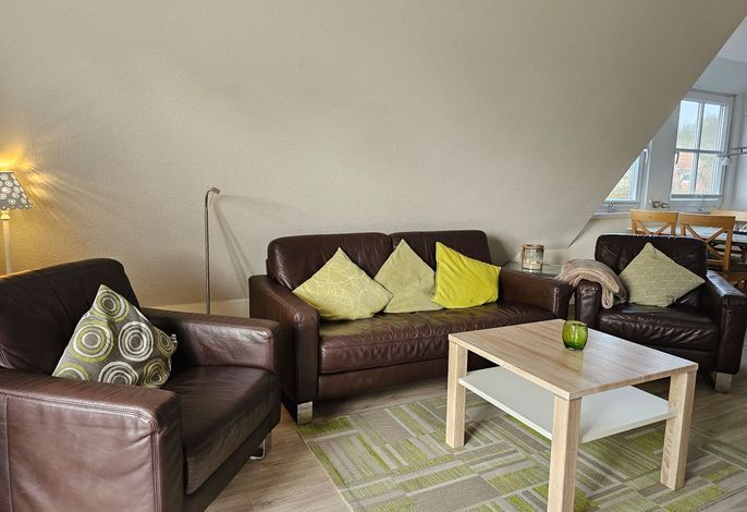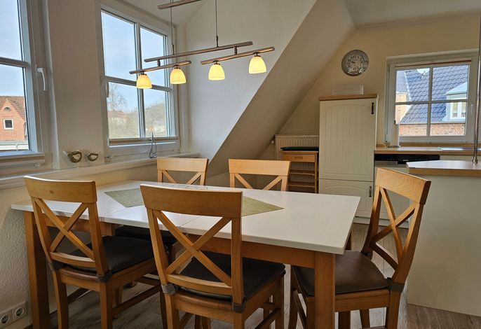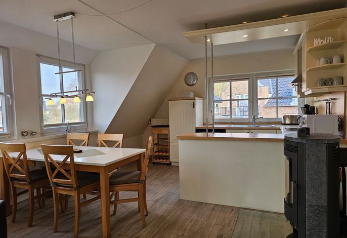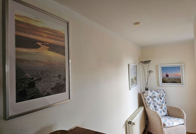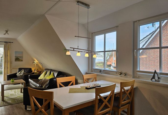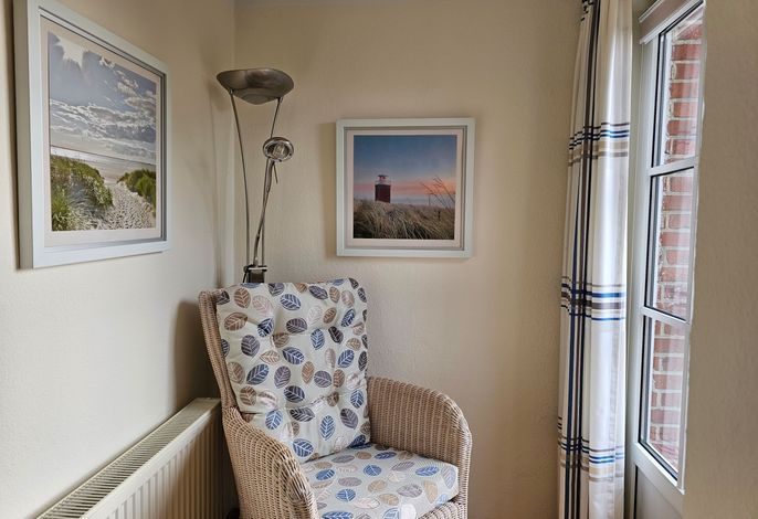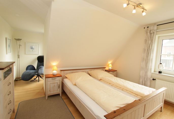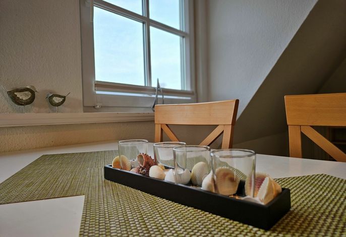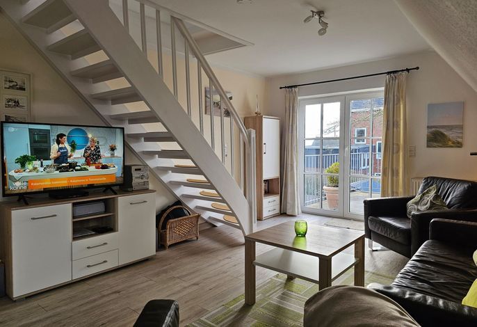 Die Wohnung Seestern ist sehr schön und stilvoll eingerichtet. Durch die Größe von 70 m² ist sie besonders gut für Familien mit Kindern geeignet, zumal der umzäunte Garten mit Spielgeräten mitbenutzt werden darf. Da sich das Haus in der 2. Reihe nach hinten versetzt befindet, wohnen Sie hier sehr ruhig und idyllisch. In weniger als einer Minute sind Sie zu Fuß am Wyker Südstrand.
