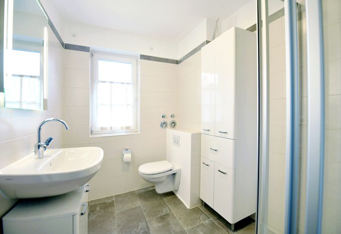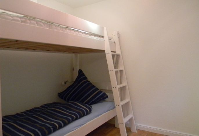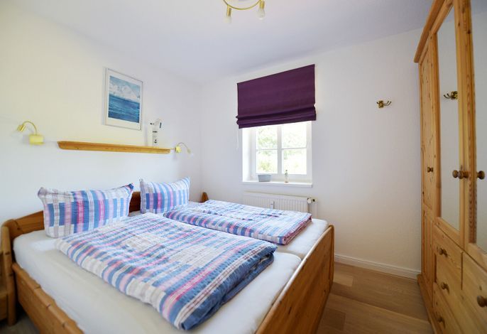 Die Erdgeschosswohnung Nr. 1 bietet Platz für zwei bis vier Personen. Ein großzügiges und helles Wohnzimmer mit bequemen Sofa, ein Essplatz sowie eine moderne Küchenecke lassen keine Wünsche offen. Vom Wohnzimmer aus geht es direkt auf die windgeschützte Südterrasse mit Mobiliar. Ein Schlafzimmer mit Doppelbett sowie ein Duschbad mit Fenster gehören ebenfalls zur Wohnung. Im Souterrain (großes Fenster) befindet sich ein kleines Zimmer mit Etagenbett.