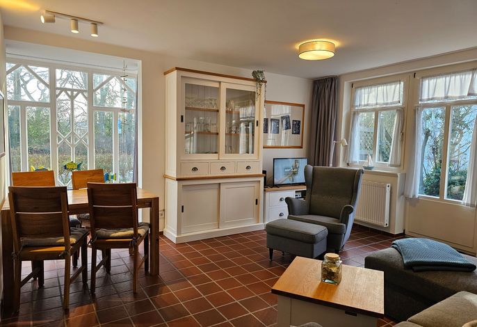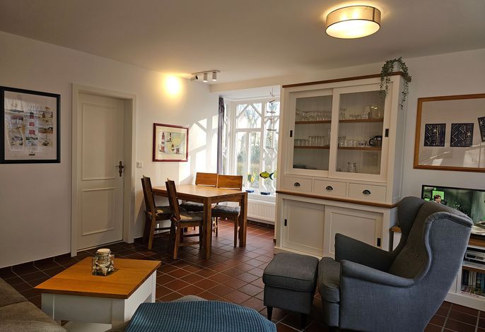 Unsere ca. 50 qm große Erdgeschosswohnung im Haus Gud Tidj erstrahlt seit Anfang 2022 im neuen Glanz und bietet bis zu 4 Personen Platz, um herrliche Urlaubstage zu verbringen. Die zentrale Lage in der Badestraße ist der ideale Ausgangsort für Ausflüge. Das Aquafoehr, die Wyker Innenstadt, das Friesenmuseum und der schöne Strand sind in wenigen Minuten zu erreichen. Das einladende Wohnzimmer mit integriertem Essbereich ist der Mittelpunkt der Wohnung und wurde von den Eigentümer zeitgemäß und gemütlich eingerichtet. Neben einem Flachbild- TV, DVD- Player, einer Musikanlage und WLAN finden Sie hier auch einige Gesellschaftsspiele und einen bequemen Lesesessel. Am Wohnbereich angrenzend befindet sich die moderne und gut ausgestattete Küchenzeile mit Ceranfeld und Backofen, Mikrowelle, Geschirrspüler, Wasserkocher und Kaffeemaschine und einer Senseo Maschine. Hier finden Sie alles, was Sie fürs tägliche Kochen benötigen. Des Weiteren verfügt die Wohnung über ein hellgefliestes Bad mit Dusche und Fenster und zwei liebevoll hergerichtete Schlafräume.