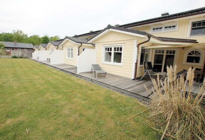 Aussergewöhnliche Reihenhäuser im Schwedenhausstil,Ferienwohnung in Wyk auf Föhr, Susanne-Fischer-Weg 33, Haus Garnele, ca. 80 qm mit Südterrasse. Vom DTV mit 5 Sternen klassifiziert.3-Zimmerhausscheibe, Nichtraucher und...