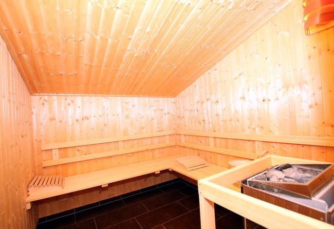 SCHLAFZIMMER 2: im OG mit Doppelbett und Kleiderschrank. BAD 2: im OG mit Dusche/Wanne/WC. Eigene Sauna im OG. Parkplatz am Haus. Geschützte Holzterrasse nach Süden (mit abnehmbarem Sonnensegel, hier kann man auch bei Regen sitzen) mit Tisch und Stühlen und 2 Liegen.
