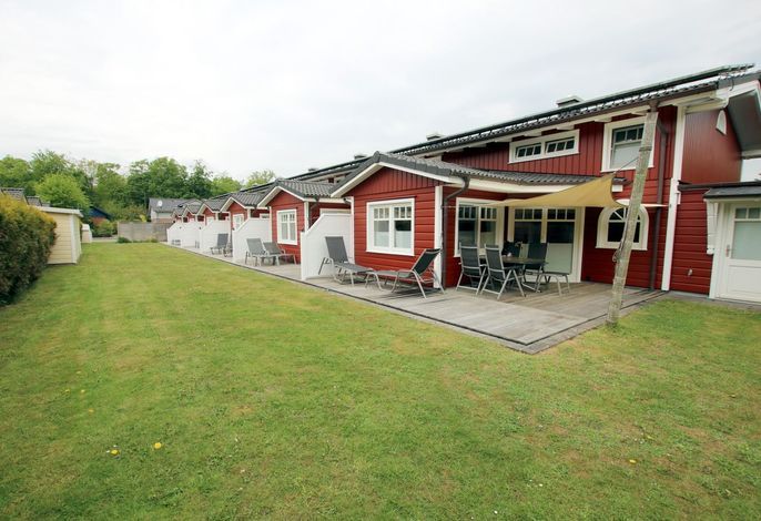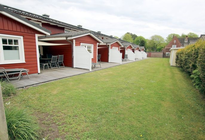 Aussergewöhnliche Reihenhäuser im Schwedenhausstil,Ferienwohnung in Wyk auf Föhr, Susanne-Fischer-Weg 35, Haus Eiderente, ca. 80 qm mit Südterrasse. Vom DTV mit 5 Sternen klassifiziert.3-Zimmerhausscheibe, Nichtraucher...