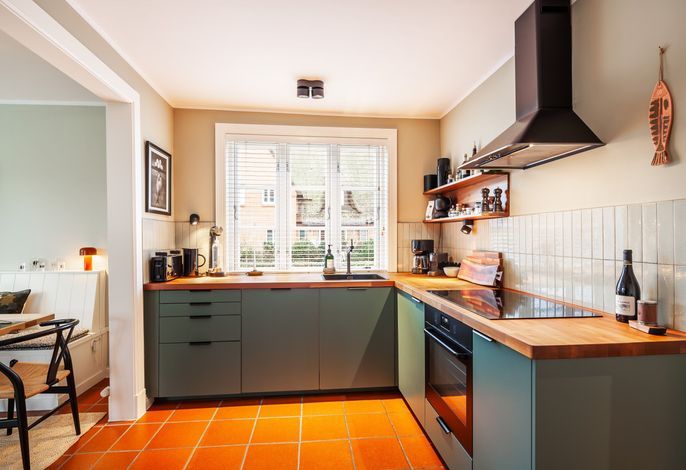 Das Grundstück ist komplett von einer Hecke umsäumt. Blühende Büsche, Rosen sowie Hortensien bieten Ihnen eine angenehme Atmosphäre. Für Sitz- und Liegemöglichkeiten über den ganzen Tag ist im gesamten Garten gesorgt. Gartenmöbel, Sonnenschirm sowie ein Strandkorb sind ebenfalls vorhanden. Der PKW-Stellplatz ist direkt am Haus.