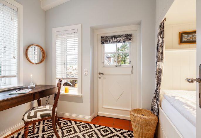 Thies Huus wurde in den 1920er Jahren von dem Föhrer Schmied Matthias Lerche erbaut. Im Frühjahr 2020 wurde das Haus komplett saniert und im Obergeschoss entstanden zwei Schlafzimmer mit Boxspringbetten und jeweils einem angrenzenden Duschbad mit WC. Im Anbau entstand ein kleines Studierzimmer mit Schlafalkoven, sodass bequem 4 5 Personen im Haus übernachten können. Im EG befindet sich ein weiteres Bad mit Wanne und WC.