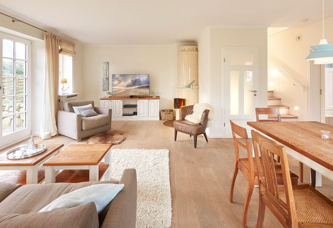 teilt sich in die Haushälfte Flut und die Haushälfte Ebbe. In einer absolut ruhigen Straße von Nieblum gelegen, wird Sie jede Haushälfte begeistern. Die Einrichtung im Landhausstil ist sehr hochwertig und geschmackvoll und...