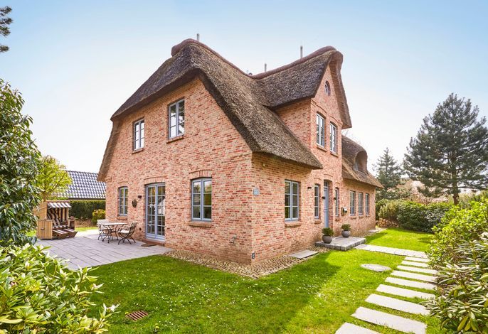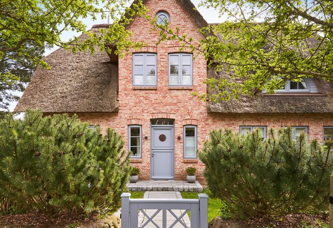 teilt sich in die Haushälfte Flut und die Haushälfte Ebbe. In einer absolut ruhigen Straße von Nieblum gelegen, wird Sie jede Haushälfte begeistern. Die Einrichtung im Landhausstil ist sehr hochwertig und geschmackvoll und lässt keine Wünsche offen. Wohnen Sie unter Reet im schönsten Dorf der Insel Föhr und genießen Sie den großen Garten mit typischen Friesenwall und schön angelegte Terrassen. In jedem Haus steht Ihnen eine Sauna mit Relaxraum zur Verfügung, und auch ein typischer Mylin-Kachelofen gehört natürlich zur Ausstattung dazu. Wir freuen uns, Sie als unsere Gäste begrüßen zu dürfen.