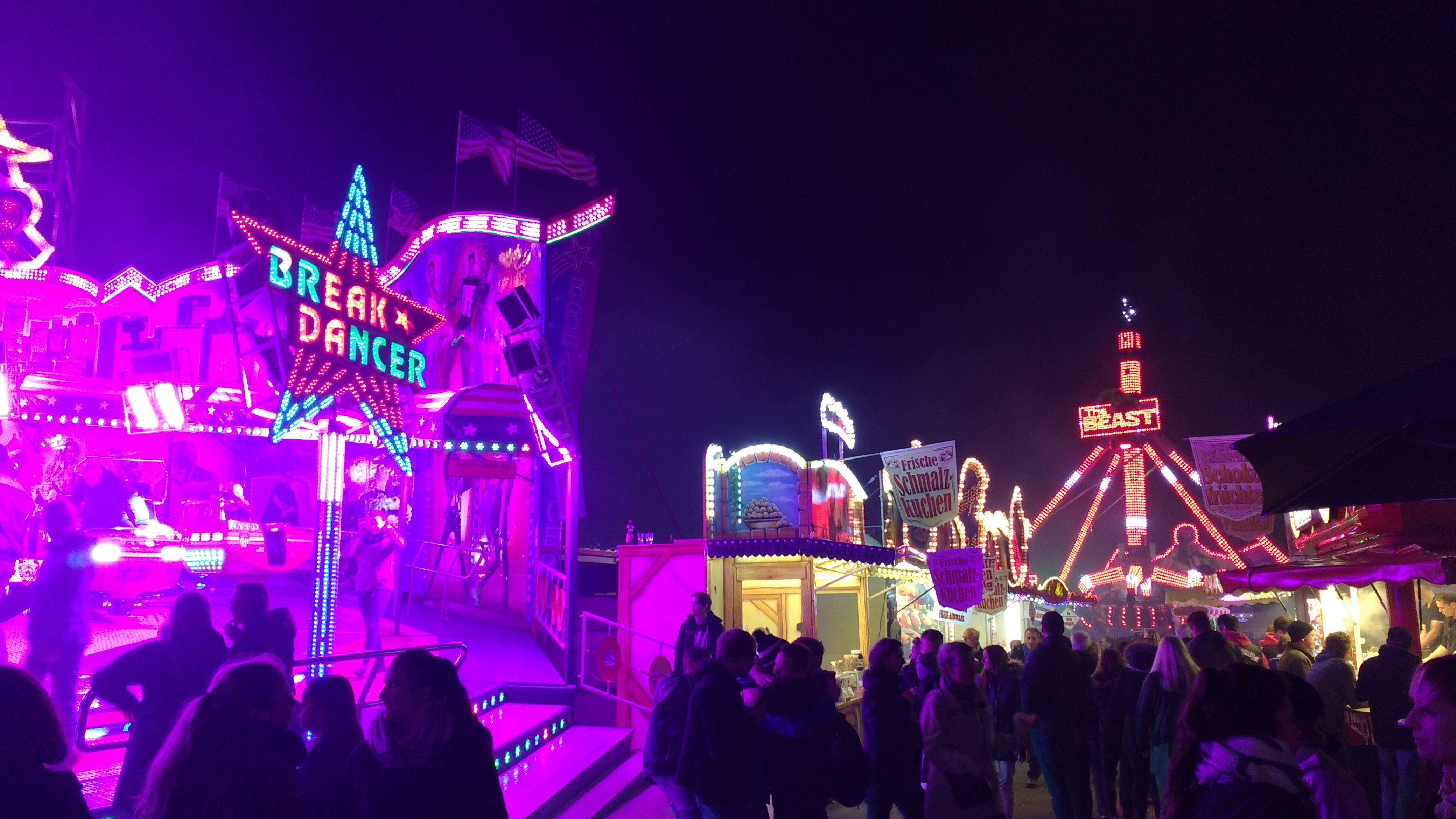 Zahlreiche Fahrgeschäfte laden zu rasanten Fahrten ein: Klassiker wie der Break Dancer und der Jumper, der altbewährte Autoscooter und Kinderfahrgeschäfte. Für Kurzweil sorgen das beliebte Pferderennen, Rosen schießen, Entenangeln, Lose ziehen, Dosen werfen, Glücksrad und vieles mehr.