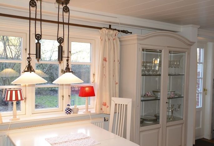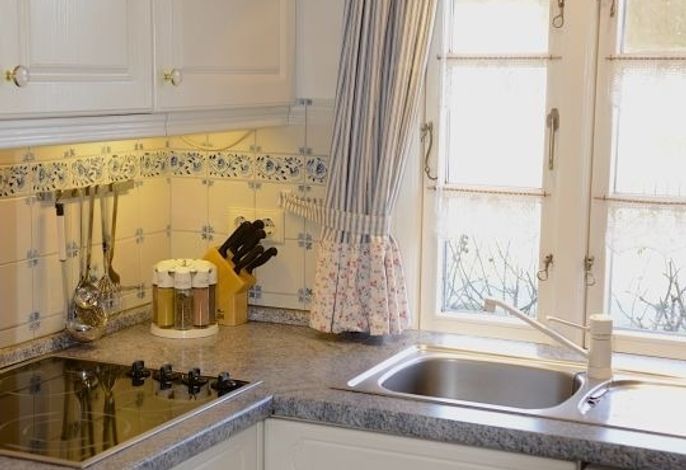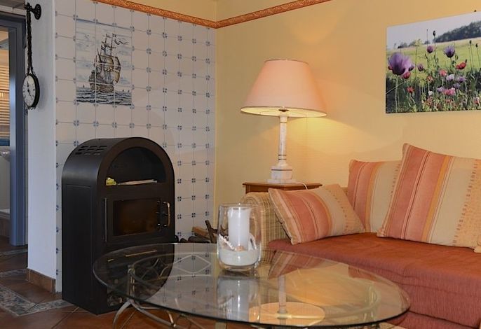 Die komplett ausgestattete Kochnische ist perfekt für kleine Mahlzeiten und fügt sich harmonisch in den Wohnbereich ein. Die Wohnung besticht durch friesische, handbemalte Delfter Kacheln, welche den traditionellen Charme des Hauses unterstreichen und ein ganz besonderes Flair schaffen.