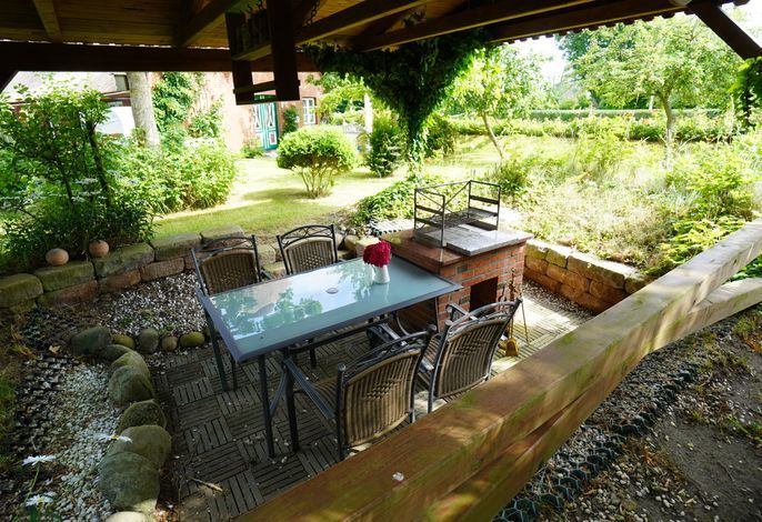 In den kälteren Monaten sorgt der dänische Bollerofen für eine gemütliche Atmosphäre - ausreichend Holz ist selbstverständlich vorhanden.