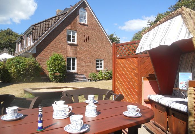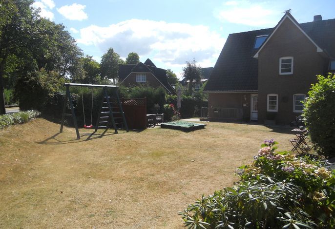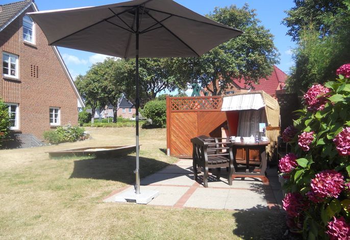 Frühstück im Bett oder doch lieber im angrenzenden Garten? – Beides ist möglich! Der Garten bietet neben einer Sandkiste und einer Schaukel auch eine Sitzecke mit Strandkorb. Hier besteht die Möglichkeit auch zu grillen.