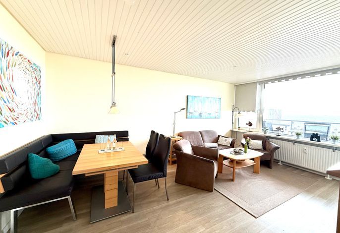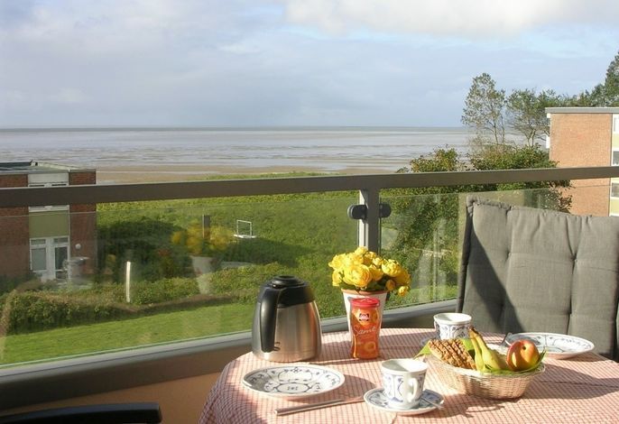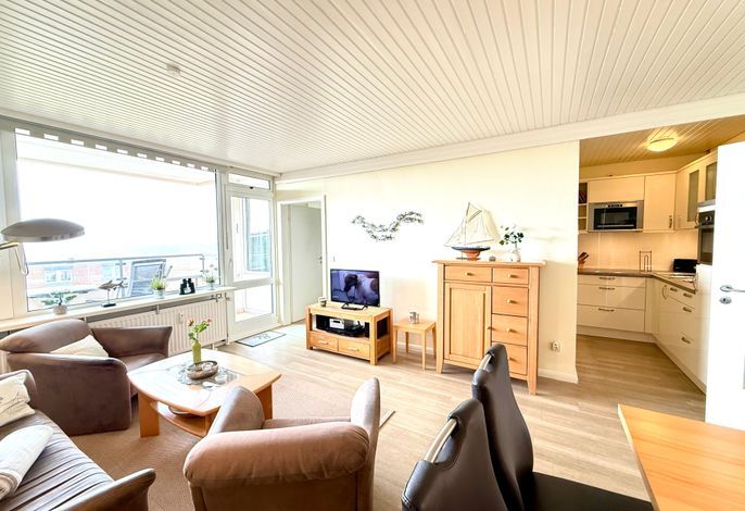 Das Appartement Nr. 14 für max. 4 Personen mit Balkon befindet sich im 2. Obergschoss des Hauses Uthlande und hat direkten Meerblick vom Wohnzimmer und Südbalkon. Hier erwartet Sie ein helles und großzügiges Wohn-Esszimmer....