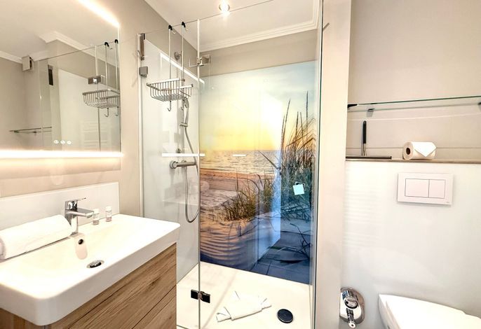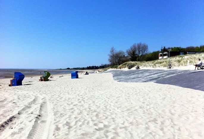 Der Wyker Südstrand ist in diesem Bereich ruhig gelegen, in der Nähe des Golf- und Flugplatzes, in direkter Anbindung an die Strandpromenade, die Sie bis zum Hafen und die Innenstadt führt. Durch die direkte Busanbindung in unmittelbarer Nähe gelangen Sie in wenigen Minuten in die Stadt oder zu den romantischen Inseldörfern. Und falls die Sonne mal nicht scheint gibt es einen Gemeinschaftsschwimmbad im Haus, wo man herrlich schwimmen und planschen kann. Ebenfalls im Haus befindet sich eine Sauna. Ein kostenfreier Parkplatz befindet sich direkt am Haus.