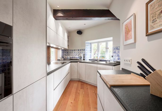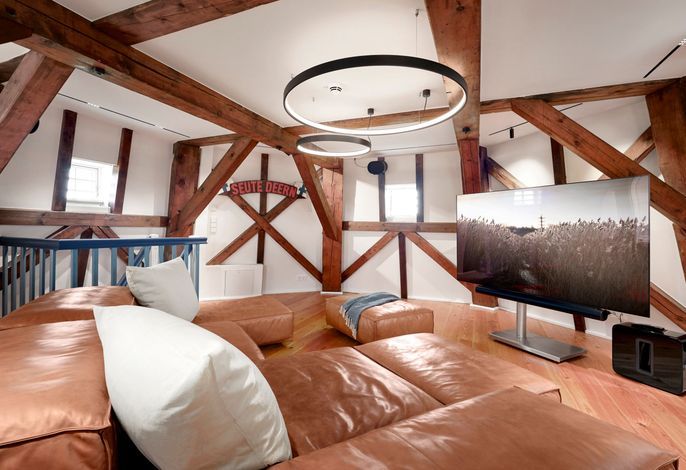 Auf fünf Ebenen läßt sich die Mühle entdecken. Von der Sauna mit großer Walk-in Dusche und Relaxbereich im Untergeschoss bis in den Kopf der Mühle, wo sich ein einzigartiger Raum mit Wohnlandschaft und großem Flachbildfernseher befindet. Die modere Küche mit historischen Details, ein großer Esstisch und Wohnbereich, sowie drei Schlafräume und zwei Bäder teilen sich die weiteren drei Etagen.