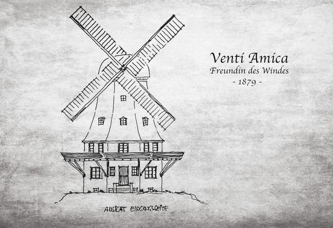 Die historische Mühle Venti Amica (lat. „Freundin des Windes“) aus dem Jahre 1879 ist ein Wahrzeichen von Föhr und befindet sich in der Mühlenstrasse in Wyk - ruhig und zentral. Sie hat eine wechselvolle Geschichte in den vergangenen Zeiten erlebt. Wohnte einst die Föhrer Dichterin Stine Andresen dort, befindet sich die Mühle heute in Privatbesitz. Der alte Mühlstein liegt noch sehr imposant im Vorgarten der Mühle und läßt erahnen, welch schwere Arbeiten früher dort verrichtet wurden.