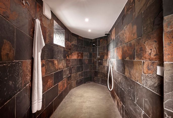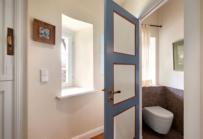 Dazu gehört natürlich auch eine Fußbodenheizung auf allen Etagen, beheizt über Erdwärme, ein state-of-the-art Soundsystem in allen Wohn- und Schlafräumen sowie in den Bädern, der Küche und im Sauna-Ruhebereich. Die Armaturen in Bädern und Küche sind von Dornbracht, die durch Hochwertigkeit und minimalistisches Design bestechen und so den Mix aus historisch und ,odern unterstreichen.