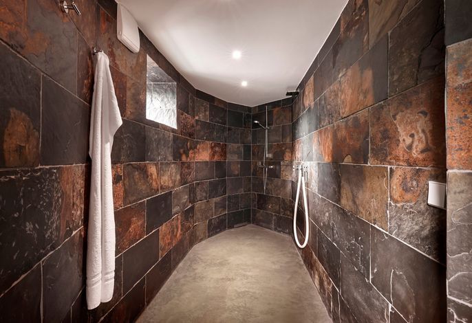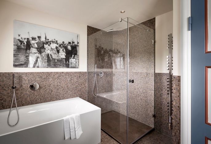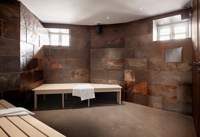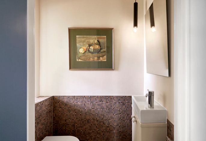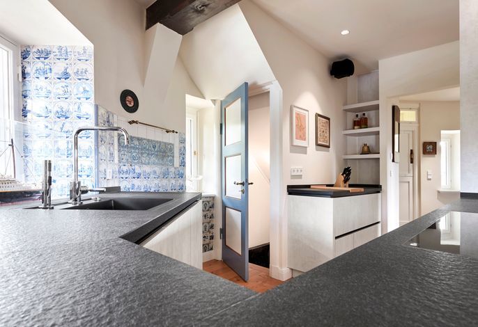 Dazu gehört natürlich auch eine Fußbodenheizung auf allen Etagen, beheizt über Erdwärme, ein state-of-the-art Soundsystem in allen Wohn- und Schlafräumen sowie in den Bädern, der Küche und im Sauna-Ruhebereich. Die Armaturen in Bädern und Küche sind von Dornbracht, die durch Hochwertigkeit und minimalistisches Design bestechen und so den Mix aus historisch und modern unterstreichen.
