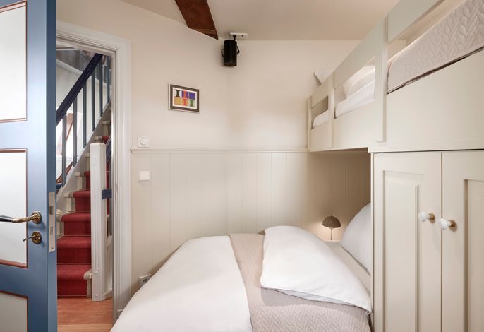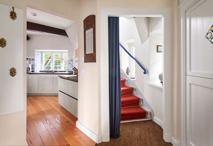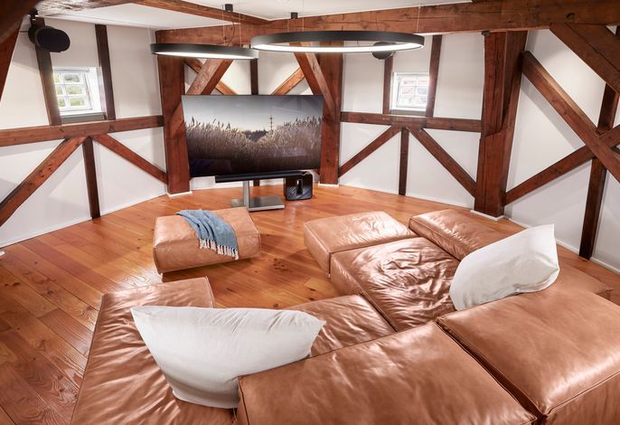 Auf fünf Ebenen läßt sich die Mühle entdecken. Von der Sauna mit großer Walk-in Dusche und Relaxbereich im Untergeschoss bis in den Kopf der Mühle, wo sich ein einzigartiger Raum mit Wohnlandschaft und großem Flachbildfernseher befindet. Die modere Küche mit historischen Details, ein großer Esstisch und Wohnbereich, sowie drei Schlafräume und zwei Bäder teilen sich die weiteren drei Etagen.