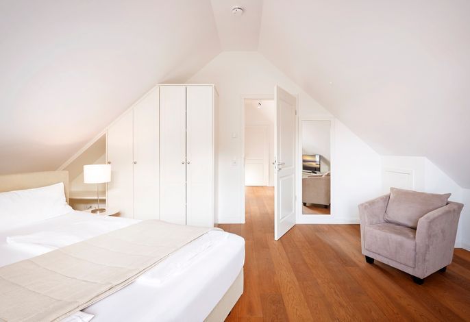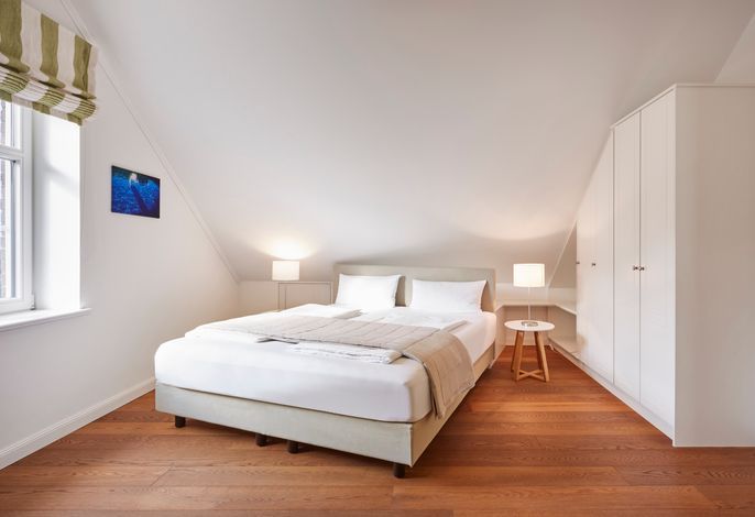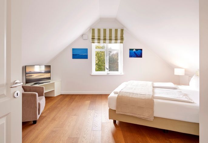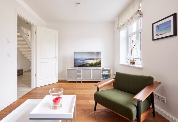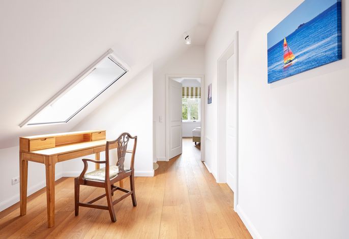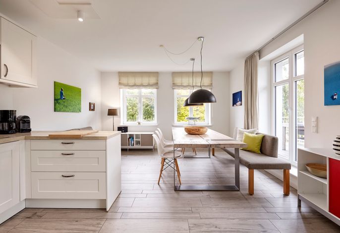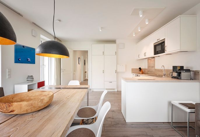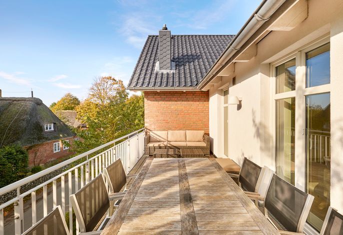 Das Objekt Villa de Meere - mit 8 individuellen und exklusiven Wohnungen - befindet sich in einer ruhigen Seitenstraße nahe dem Nieblumer Ortskern. Die Wohnung Villa de Meere 5 zeichnet sich durch eine große Dachterrasse mit gemütlichen Loungemöbeln aus. Die Terrasse wird sicherlich Ihr Lieblingsplatz. Hier fängt der Tag mit einem ausgiebigen Frühstück an, und am Abend genießen Sie Ihr Glas Wein mit Blick auf die Grünanlage und den Dorfteich De Meere. Die Küche mit dem wunderbar großen Essplatz ist das Herzstück der Wohnung. Hier können Sie kochen, klönen und den Urlaubstag planen. Wenn es Zeit zur Entspannung ist, bieten Ihnen die gut geschnittenen Schlafräume viel Platz. Nieblum selbst, das wohl schönste Inseldorf, ist geprägt von reetgedeckten alten Kapitänshäusern, wunderschönen Bauerngärten und dem Friesendom St. Johannis. Der Nieblumer Strand liegt nicht weit vom Ortskern entfernt. Cafés, Restaurants sowie ein Bäcker und Einkaufsmöglichkeiten für den täglichen Bedarf sind im Ort vorhanden und bequem zu Fuß zu erreichen.