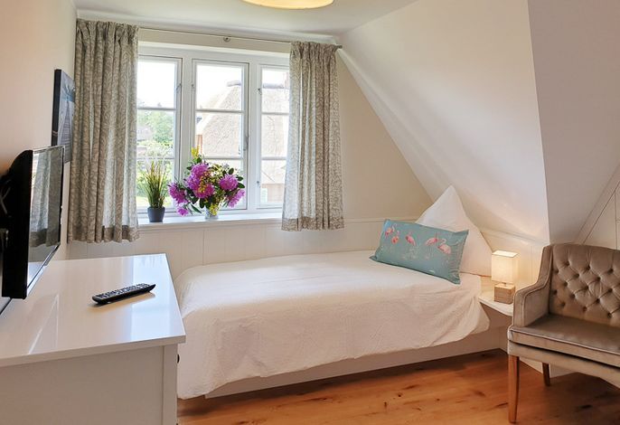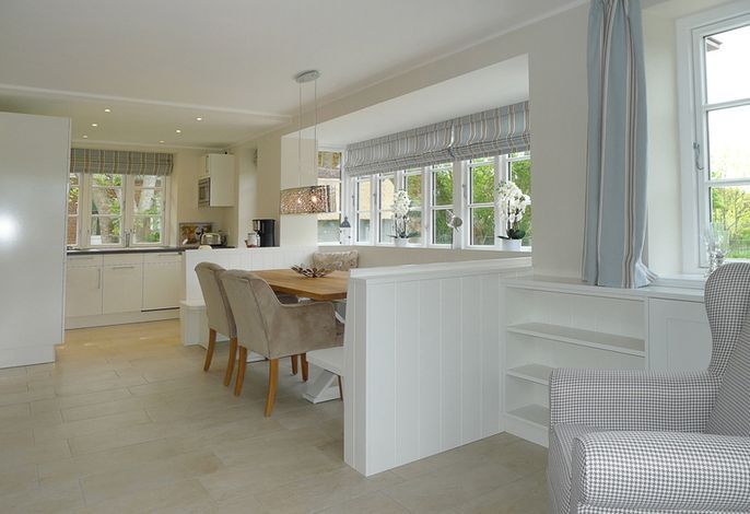 Nahe zum Stadtkern Wyk erwartet Sie ein typisches Friesenhaus mit schönen Details wie ein Reetdach, Holzsprossenfenster, ausgewählte Fliesen und passgenaue Tischlerarbeiten. In dieser modernen Doppelhaushälfte haben Sie alles was den Urlaub auf einer Nordseeinsel so typisch macht.. Der große Garten lädt schon bei den ersten Sonnenstrahlen dazu ein, draußen zu sitzen und die Nordseeluft zu spüren..Mit nur wenigen Schritten gelangen Sie in den Stadtkern von Wyk. Hier laden zahlreiche Geschäfte, Cafes und Restaurants zum bummeln und einkehren ein. Von der Promenade haben Sie einen wunderbaren Blick auf die Nordsee und die Halligen ?- Urlaub pur!.