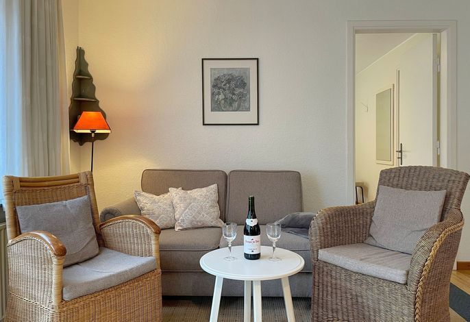 Wyk auf FöhrDie strandnahe und helle Erdgeschoßwohnung bietet Platz für bis zu vier Personen. Zusätzlich zu dem großen separaten Schlafzimmer mit einem Doppelbett kann man auch die schöne, helle Schlafnische...