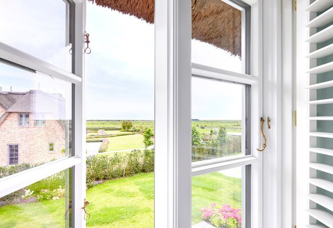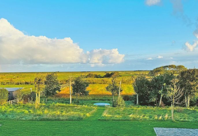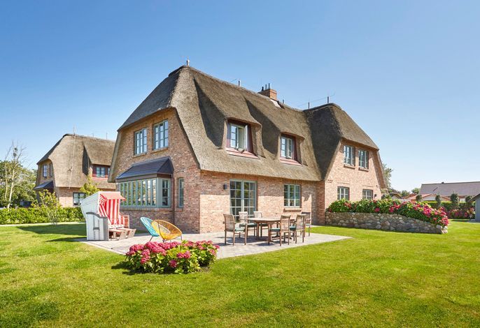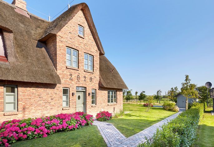 Dieses am „westlichen Deich“[nbsp] liegende Reetdachdoppelhaus befindet sich am Ortsrand des beschaulichen und wunderschön-typischen Inseldorfes Oldsum. Mit freiem Blick in die Föhrer Marsch genießen Sie die Natur direkt schon am Morgen beim Aufstehen und von der Terrasse beim Frühstück mit der Familie. Der riesige naturnahe Garten lädt ein zum gemütlichen Lesen oder Träumen ein. Für die Kinder ist draußen wie drinnen ausreichend Platz um sich zu amüsieren und die Natur zu entdecken.
