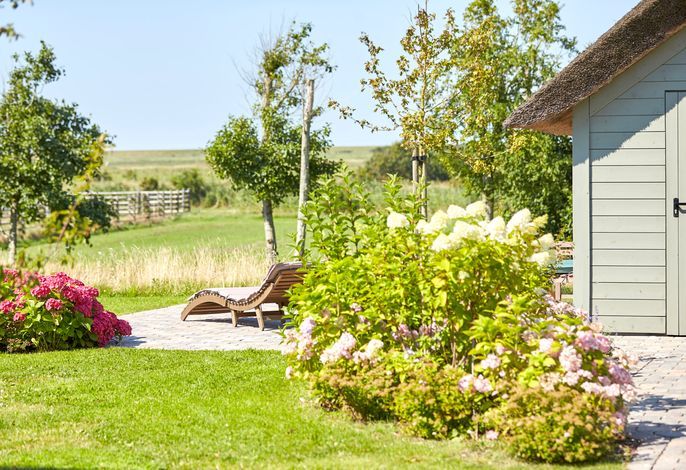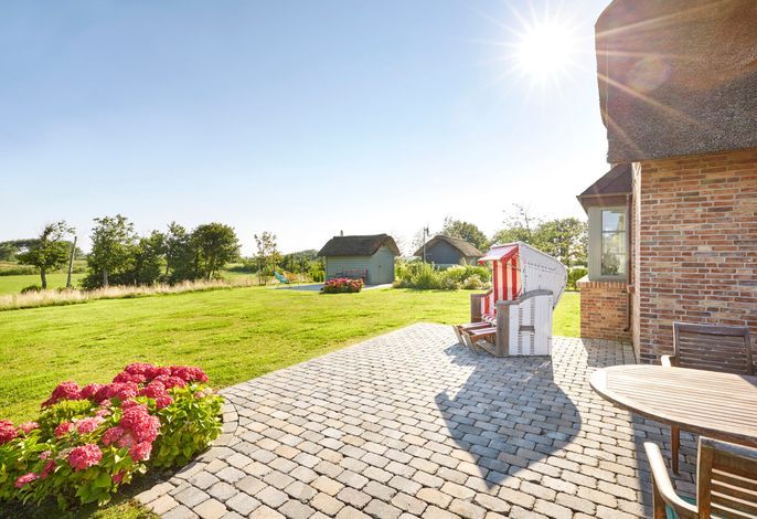 Das am „westlichen Deich“[nbsp] liegende Reetdachdoppelhaus befindet sich am Ortsrand von Oldsum. Dieses beschauliche und wunderschöne Inseldorf ist typisch für Föhr. Mit freiem Blick in die Föhrer Marsch genießen Sie die Natur direkt schon am Morgen beim Aufstehen und von der Terrasse beim Frühstück mit der Familie. Der riesige naturnahe Garten lädt ein zum gemütlichen Lesen oder Träumen ein. Für die Kinder ist draußen wie drinnen ausreichend Platz, um sich zu amüsieren und die Natur zu entdecken.