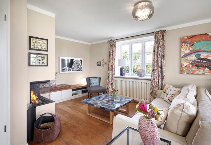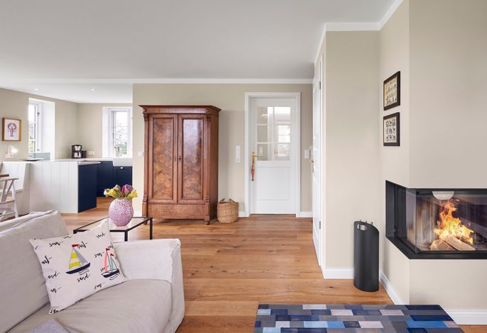 Das Haus bietet Platz für 6 Personen in drei Schlafzimmern. Der Kamin im Wohnzimmer lässt es zu jeder (Jahres-)Zeit gemütlich werden. Die Utlucht mit großem Esstisch und die offene Küche sind perfekt für die große Runde mit Familie und Freunden. Im Dachgeschoss können Sie den Tag in Ruhe bei einem erholsamen Saunagang ausklingen lassen und ungestört relaxen.