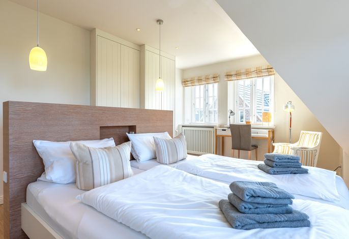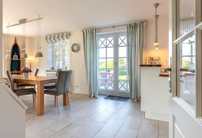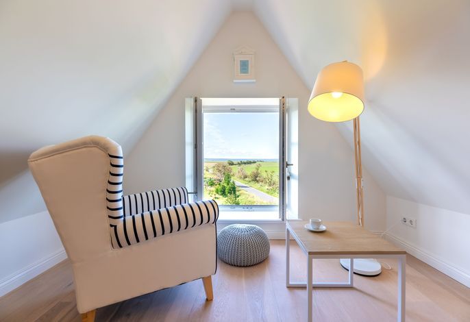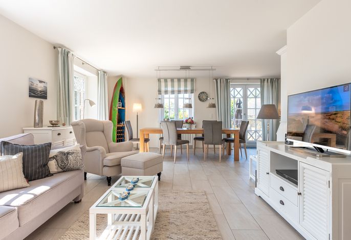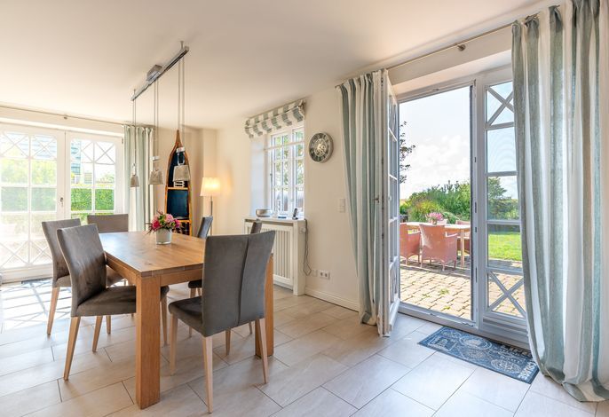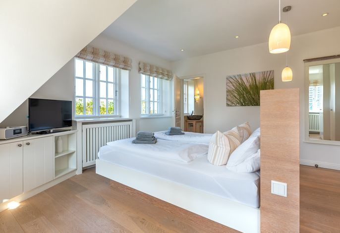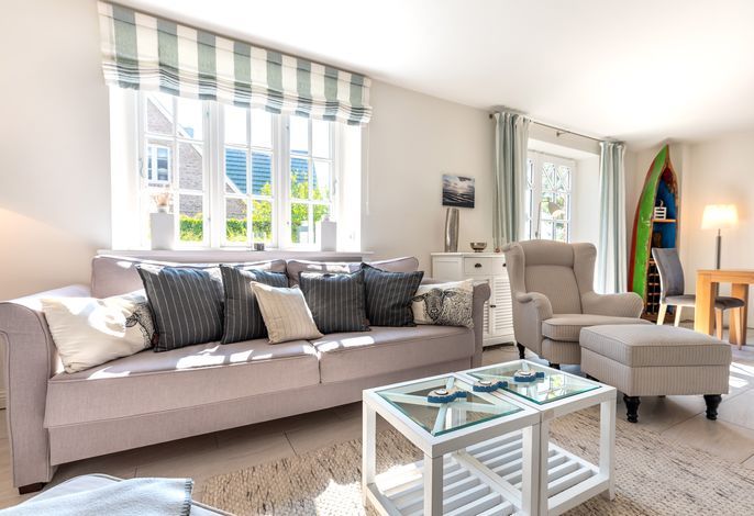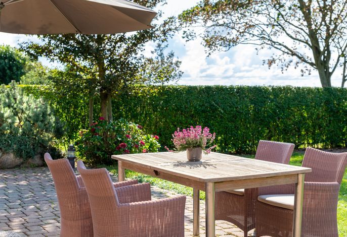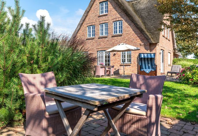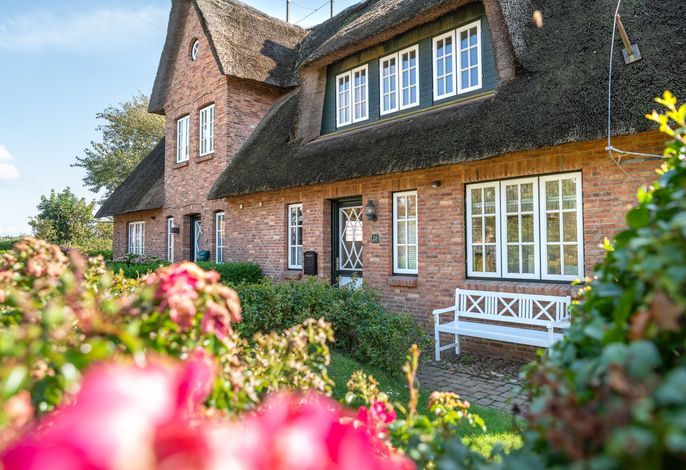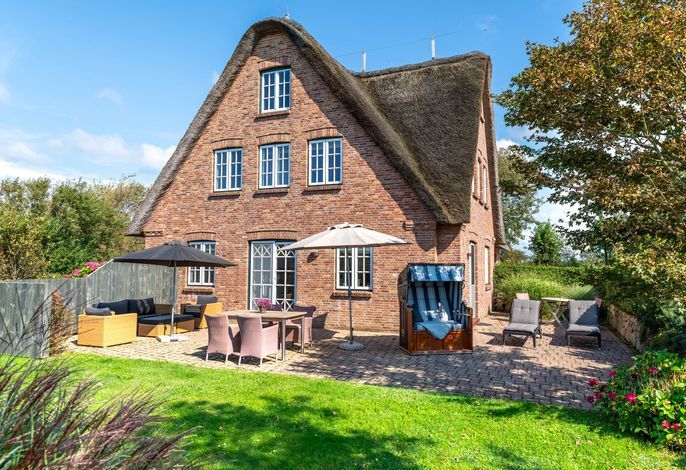 Verbringen Sie Ihren Urlaub am Kliff. Goting ist der ruhige Ortsteil von Nieblum und liegt am einzigen Kliff der Insel. Die Reetdachdoppelhaushälfte liegt auf einem ca. 570 qm großen, sonnigen Grundstück. Sie genießen einen freien Blick über die Wiesen bis hin zum Meer. Der Strand liegt fast direkt vor Ihrer Haustür und ist mit wenigen Schritten zu erreichen. Blicken Sie aus dem Obergeschoss auf die Nordsee - dieser Blick über das Wattenmeer und auf die Nachbarinsel Amrum ist einzigartig. In wenigen Minuten erreichen Sie Nieblum. Das Friesendorf gilt seit langem als eines der schönsten Dörfer in ganz Norddeutschland. Die alten Kapitänshäuser, gute Einkaufsmöglichkeiten, schöne Restaurants und nette Cafes machen es zu jeder Jahreszeit zu einem unvergesslichen Urlaubsort.