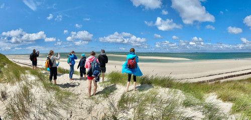 Ca. 7,5 km Watt = festeres Sandwatt. Wir wandern über weite weiße Sandbänke Richtung nördliches Dünengebiet von Amrum.