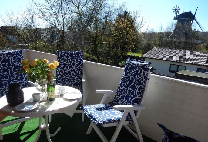 Die Wohnung besitzt neben dem Wohnraum mit Esstisch und angrenzender Einbauküche, zwei Schlafzimmer, Duschbad und Süd-West-Balkon mit Gartenmöbeln. Von allen Räumen aus haben Sie einen Blick auf die Wyker Mühle. Die moderne Küche verfügt über ein Ceran-Kochfeld, Geschirrspüler, Kühlschrank mit Gefrierfach, Wasserkocher, Toaster, Mikrowelle, Eierkocher, Mixer und natürlich alles was ein Koch benötigt. Die zwei Schlafzimmer mit einem Doppelbett (getrennte Matratzen je 90 x 200 cm) und zwei Einzelbetten (je 90 x 200 cm) sorgen für erholsame Nächte während Ihres Urlaubs. Das Tageslicht-Duschbad verfügt über eine Badewanne mit Glas-Duschwand. Die Ferienwohnung verfügt über einen SAT-TV, WLAN und eine Stereoanlage. Ein Tiefgaragenstellplatz gehört zur Wohnung (max. Höhe Ihres Autos darf 180 cm nicht überschreiten).