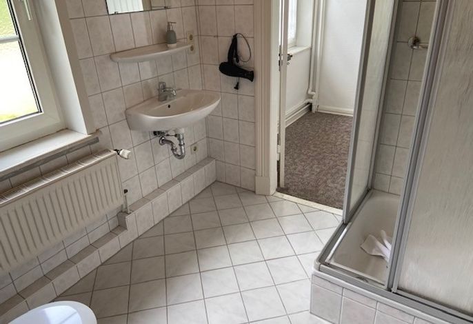 Die Ferienwohnung hat 2 Schlafzimmer und ist ausgestattet mit Doppel - und Einzelbetten. Das Badezimmer verfügt über eine Dusche und einen Haartrockner.