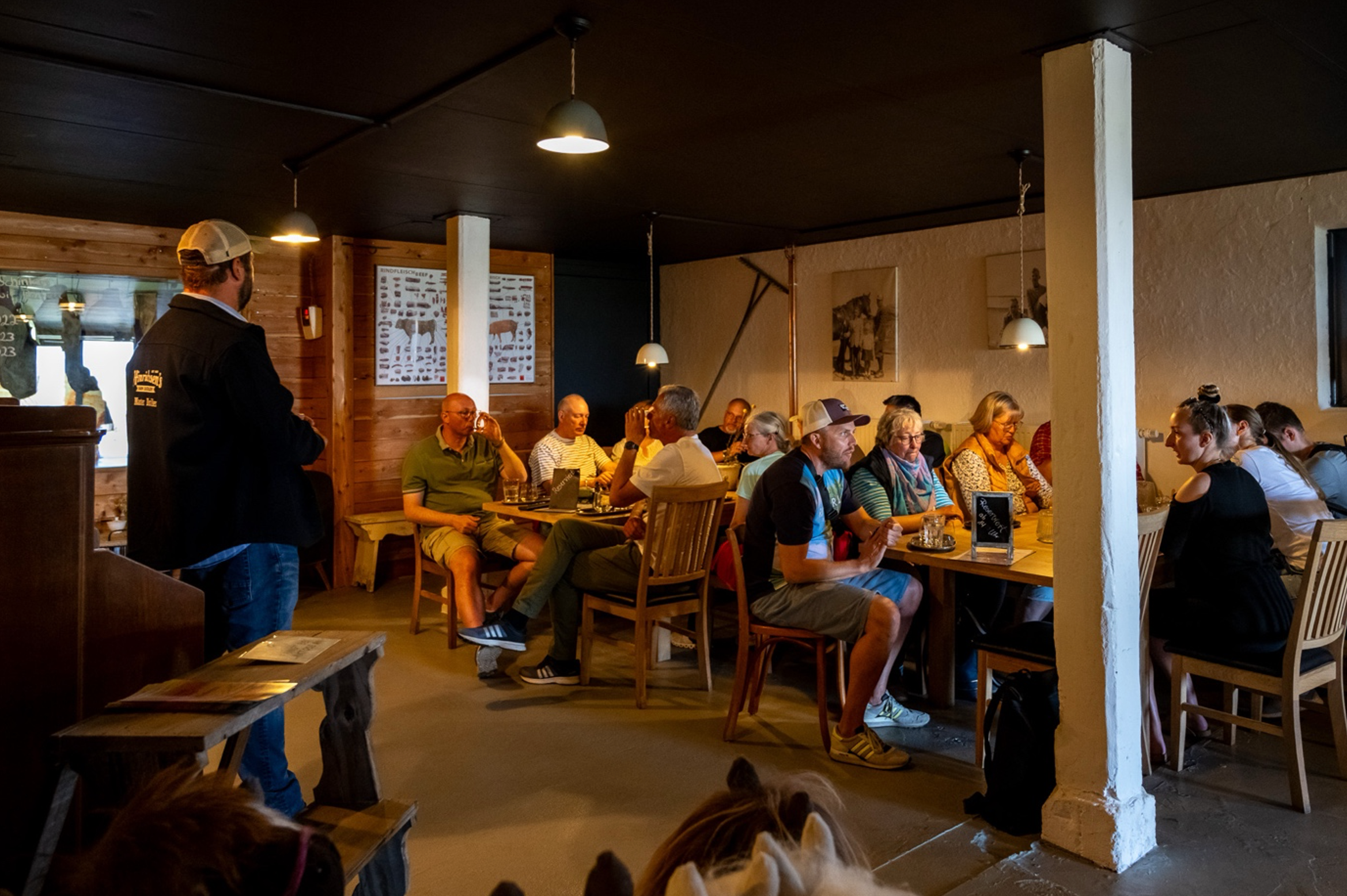 Zum Auftakt unseres rund zweistündigen Erlebnisses geht es zu Fuß vom Hof auf den Deich. Dort, mit Blick aufs Meer, Salz in der Luft und Wind im Gesicht, verkosten wir gemeinsam den ersten Dram – und sprechen darüber, welchen Einfluss der raue Westwind auf die Reifung unseres Whiskys hat.